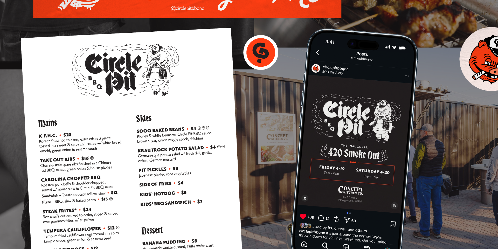 This ain't your grandpa's BBQ! Blending traditional Eastern North Carolina whole hog with street food influences from his travels abroad, Chef Chris Tolbert is pushing the limits of what can be done in the world of barbecue. I was tasked with matching the brand to this decidedly unconventional style, and the result was a fun and approachable mascot paired with a word mark that represents their metal, punk, and service industry roots.ART DIRECTION • BRANDING IDENTITY • MERCHANDISE • SOCIAL MEDIA