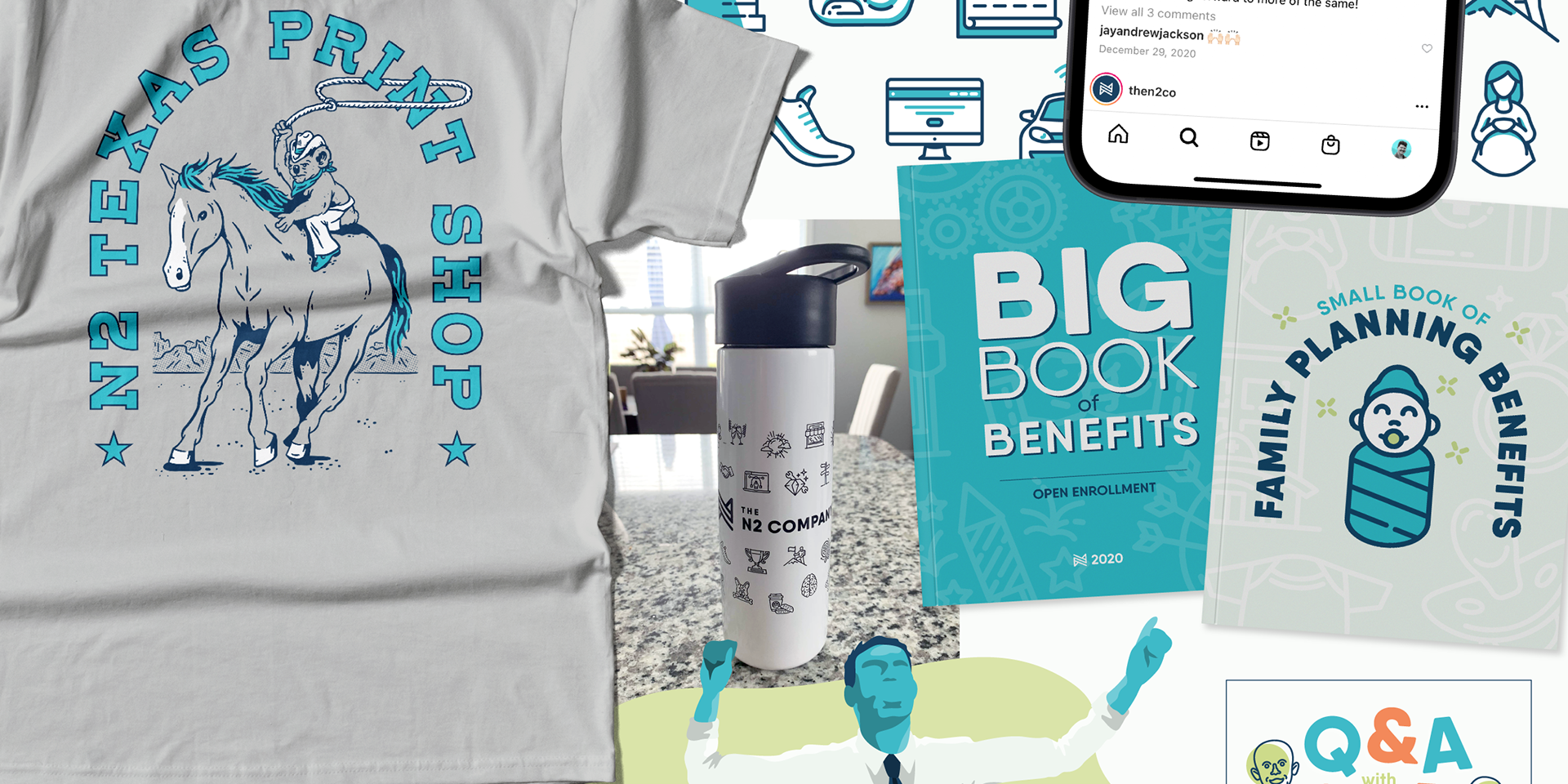 As an in-house brand designer for The N2 Company, I had the opportunity to work on a wide variety of both internal and marketing materials. We were continually tasked with maintaining and evolving the brand. Along with fellow designers Kelsey Tweed and Josh Rivenbark, we developed a large set of custom icons and a custom illustration style. I've also designed various logos for internal programs and events, as well as designing, building, and maintaining the company website.BRAND EXTENSION • ICONOGRAPHY • ILLUSTRATION • LOGO DESIGN • MERCHANDISE • PRINT • SOCIAL MEDIA • WEB DESIGN